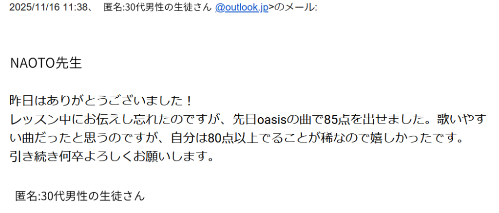 レッスン終了後には毎回メールで課題と改善方法をアドバイスします。